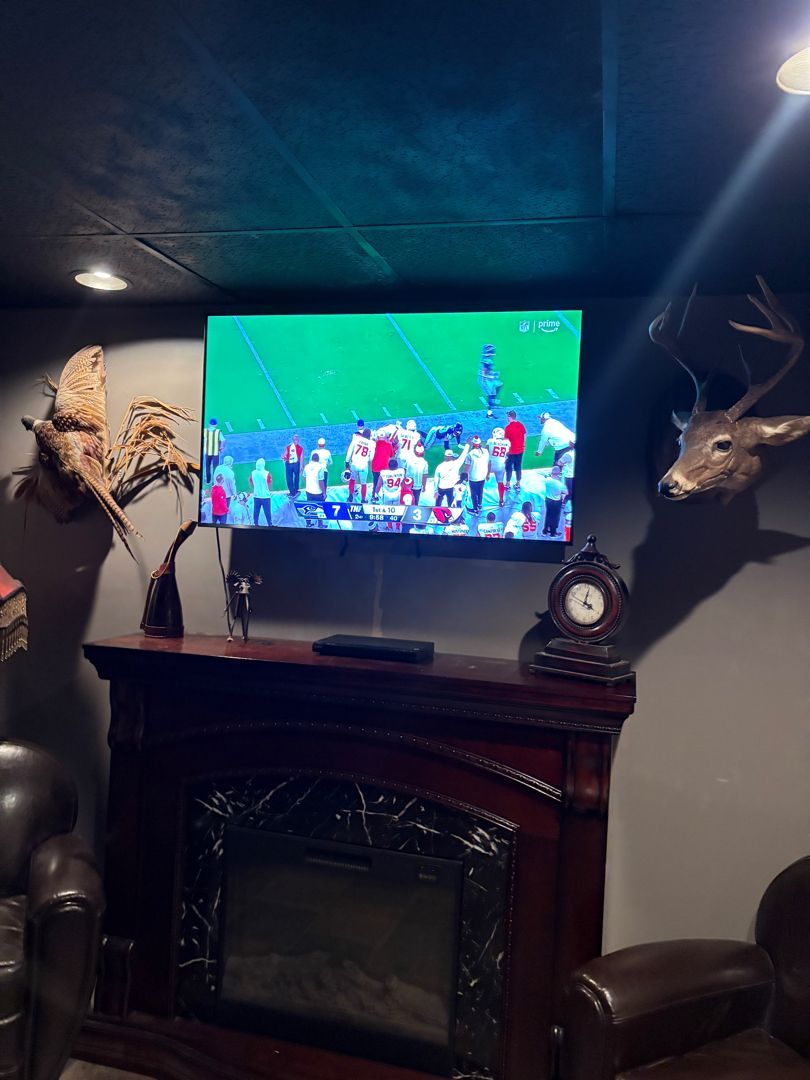 Mounting a television above a fireplace is one of the most requested and most frequently mishandled installations in residential settings. We complete fireplace TV mounting with careful attention to heat exposure, viewing angle implications, and proper outlet positioning — ensuring both the safety of your television and the comfort of everyone watching it from a seated position in the room.